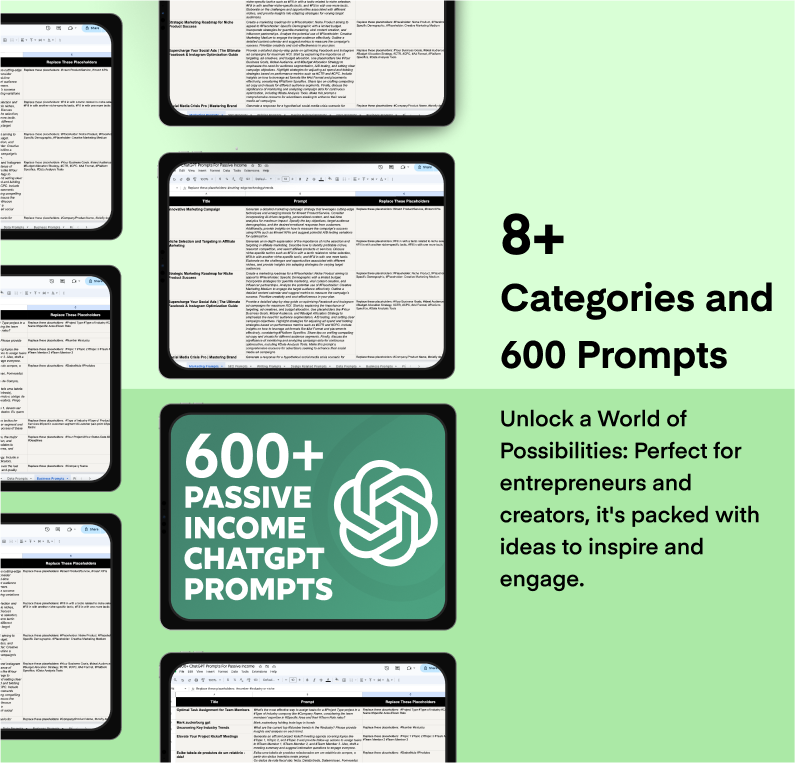 Embark on a journey of digital marketing innovation today with our "600 ChatGPT Prompts For Passive Income" and unlock the potential of AI in your content strategy!